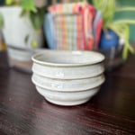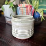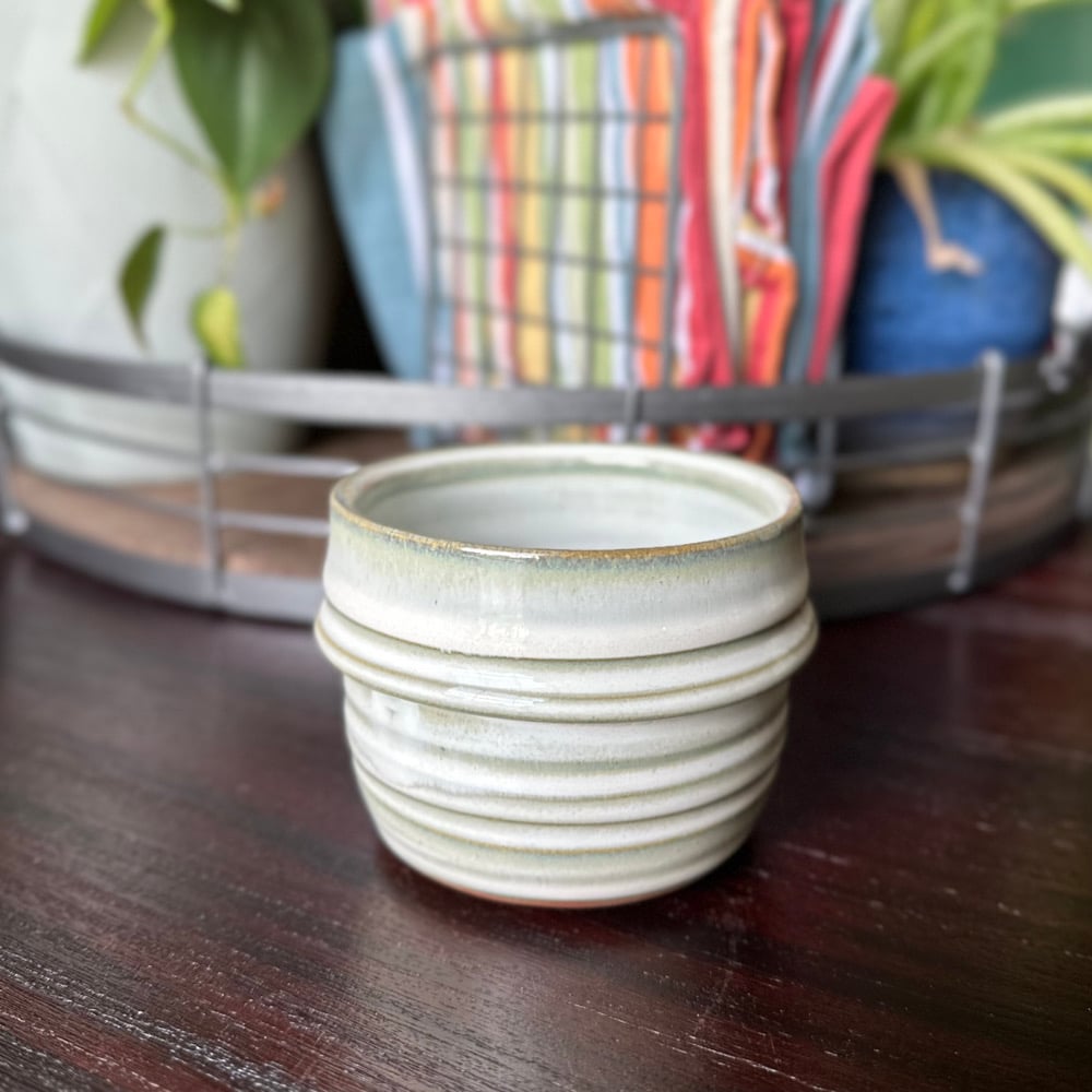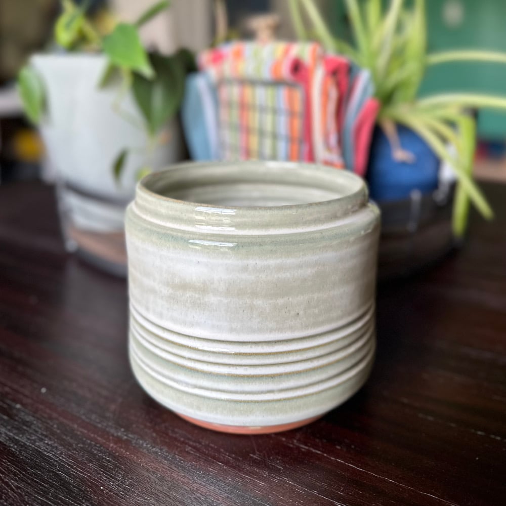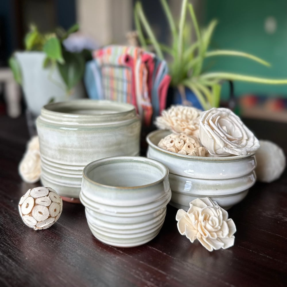 This set of three wheel-thrown vessels is glazed in a soft sage with a light, earthy feel. The simple ridges give each piece a bit of character while keeping things clean and calm.